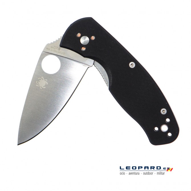 La compañía Spyderco ha escogido G-10 para la fabricación de las cachas de esta navaja. Se trata un material formado a partir de fibra de vidrio impregnada en resina epoxy, que se puede tintar en diferentes colores.