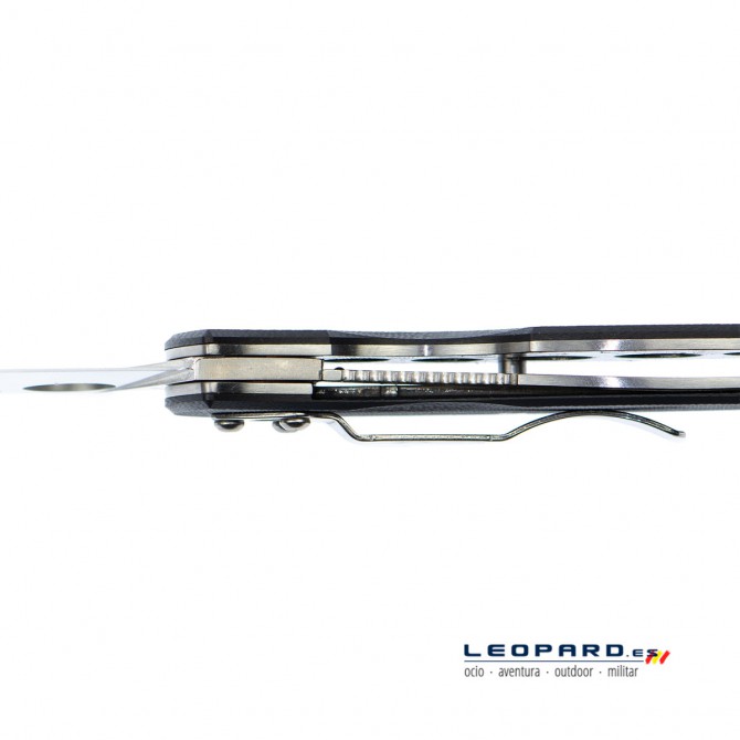 A su vez, este material destaca por ser impermeable y resistente. Cuenta con un acabado negro y un diseño texturizado, que mejora el agarre de la navaja. Además, incorpora un clip de bolsillo para que sea más cómodo su transporte.