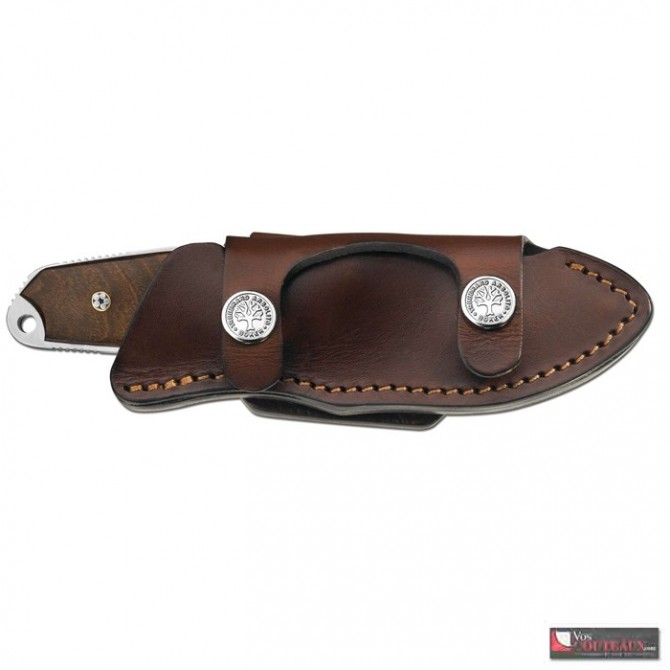 El equipo de desarrollo de Böker Arbolito ha incorporado en este modelo una funda de cuero marrón de altísima calidad, que permite transportar el cuchillo de una manera práctica y cómoda. Además, el cuchillo estará protegido contra posibles golpes y arañazos.