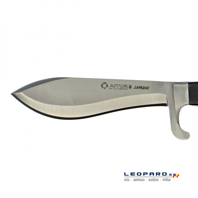 La hoja de este cuchillo tiene un estilo de hoja Drop Point, que aportará robustez y precisión a la punta. Además, incluye un perfil tipo Machete, que dotará a la hoja de este cuchillo Aitor de un control extremo en su cortes sobre superficies grandes, que serán de una gran calidad.