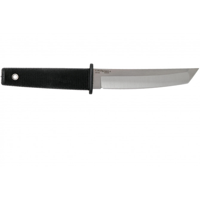 Cold Steel ha diseñado el cuchillo Kobun con hoja estilo Tanto en acero inoxidable AUS-8A. Este perfil de hoja destaca por su durabilidad y potencial de corte. Además, la punta está reforzada por todo el grosor del lomo de la hoja, lo que la hace altamente resistente a doblarse o romperse. Asimismo, la empuñadura del cuchillo está diseñada con Kraton, que ofrece un mejor agarre.