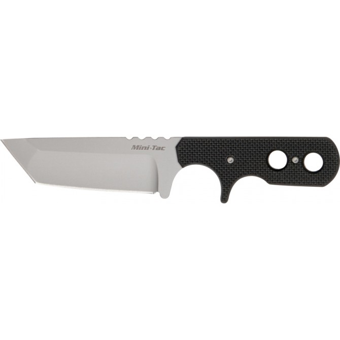 Cold Steel ha desarrollado una serie de cuchillos de cuello, los Mini Tac. Este modelo cuenta con una hoja estilo Tanto fabricada en acero japonés AUS-8A. La empuñadura está elaborada en Grivory e incluye funda de polímero.
