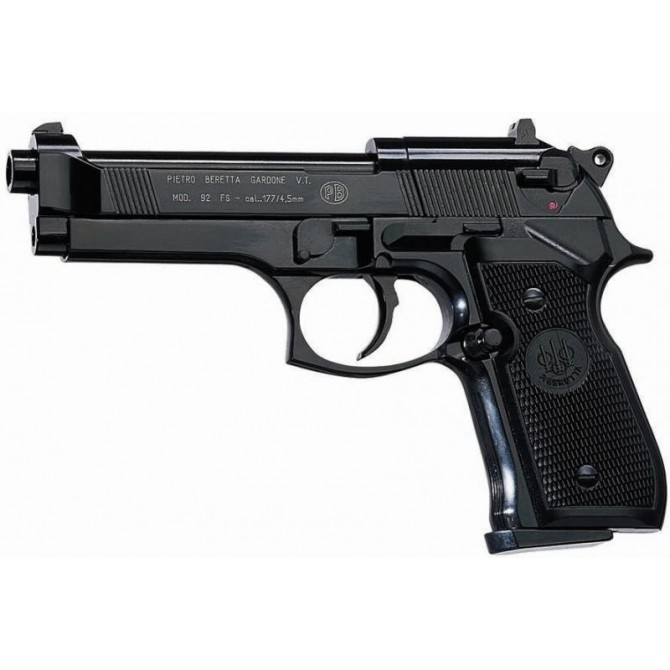 La Beretta M92 FS es un pistola semi-automática Full Metal con cañón de acero estriado y con corredera fija. Cuenta con una capacidad en el cargador de 8 balines. Incluye miras abiertas y alza regulable, por lo que será un modelo especialmente diseñado para tiro deportivo de precisión a media distancia.