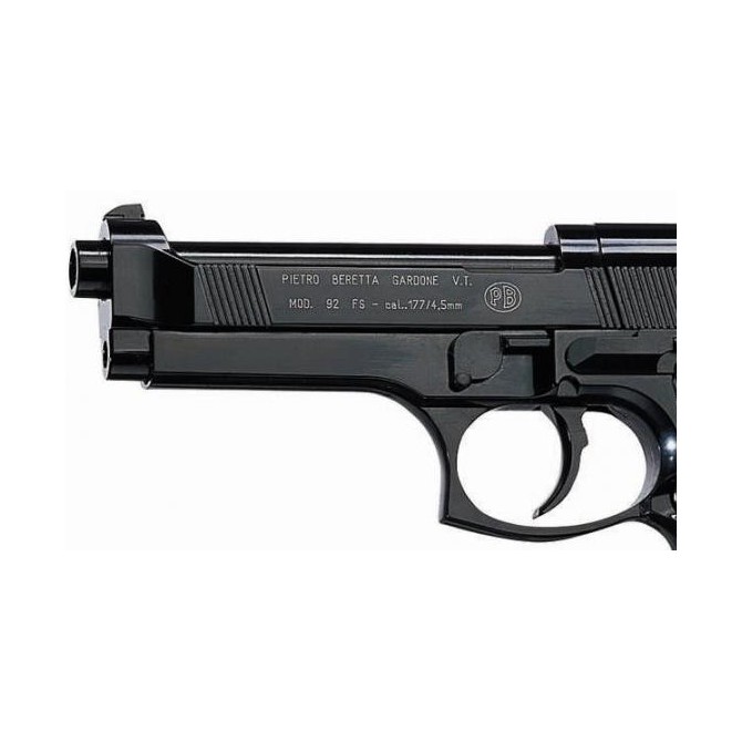 El fabricante alemán UMAREX diseñó un cañón de acero estriado, que mejorará la precisión del disparo. Además, la M92, tiene una potencia de tiro de 3,5 Julios, lo que proporciona una velocidad de salida de 120 m/s. Tiene un seguro manual para aumentar la seguridad del tirador y prevenir accionamientos accidentales.