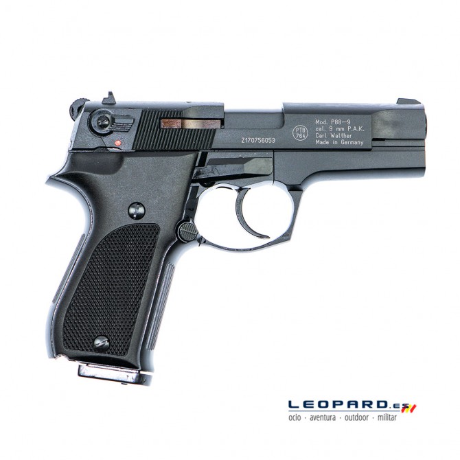 La Walther P88 es una pistola detonadora fabricada por Umarex en Alemania. Dispara munición P.A.K. de 9mm y el cargador tiene una capacidad de 10 cartuchos de fogueo. Incorpora un gatillo simple y de doble acción.