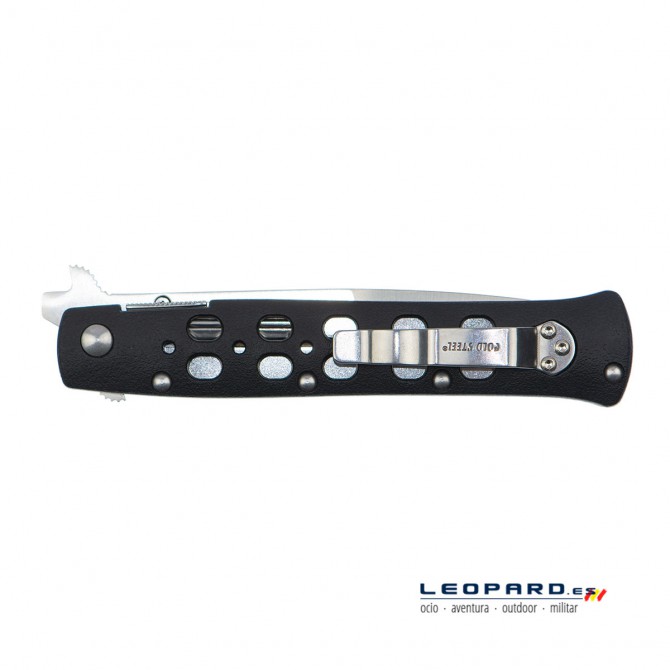 Los desarrolladores de Cold Steel han incluido en esta navaja un sistema de bloqueo tipo Liner Lock, uno de los más populares y seguros del mercado actual. Este mecanismo está formado por una placa de metal vertical que hace tope contra la espiga. Así, la presión evita que la cuchilla se mueva.