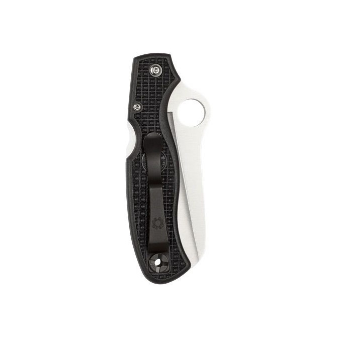 Un elemento diferencial del mango ergonómico de esta navaja es su acabado en color negro con un patrón texturizado. Así, Spyderco presenta una navaja con una estructura resistente a la abrasión, ligera y con un buen agarre. Además, las cachas también cuentan con un clip de bolsillo reversible que proporciona un transporte ambidiestro.
