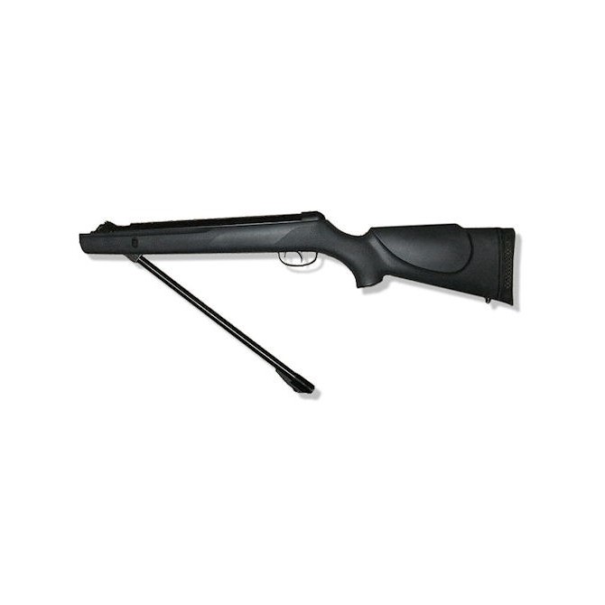Mecanismo: Carabina ambidiestra con cañón basculante de acero estriado. Gatillo de dos tiempos. Seguro de disparo manual.