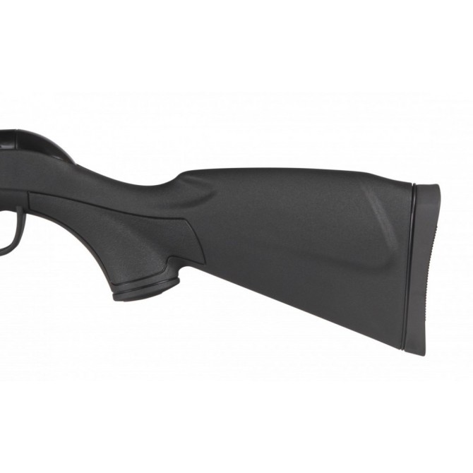 Mecanismo: Carabina ambidiestra con cañón basculante de acero estriado. Gatillo de dos tiempos. Seguro de disparo manual.