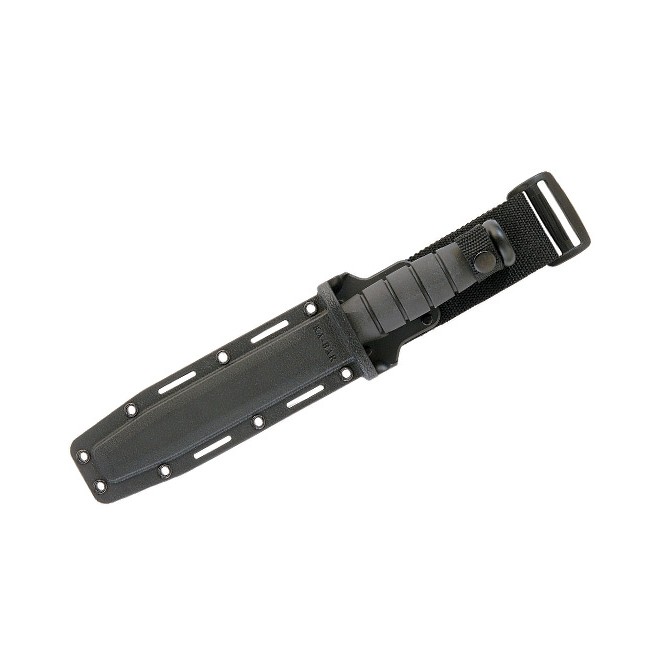 Otra de las características que convierte a este modelo en un cuchillo especial es la envoltura en la que puede ser transportado. Ka-Bar incluye una funda robusta de GFN con anclaje para ajustar todo tipo de equipamientos. Además, lleva grabado el logotipo del fabricante.