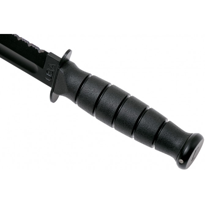 El cuchillo Ka-Bar Short es uno de los modelos más vendidos del fabricante americano. Cuenta con una increíble hoja de acero pavonado en negro y construida en acero 1095. Incorpora filo mixto con empuñadura de kratón ergonómica con funda de polímero GFN, nylon reforzado de vidrio.