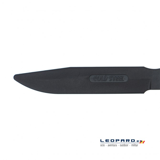 La hoja de este cuchillo de entrenamiento está diseñado en Santoprene, un tipo de termoplástico vulcanizado, parecido a la goma dura, que permite realizar ejercicios de entrenamiento con una aproximación considerable sin que se produzcan lesiones corporales. No obstante, es recomendable utilizar protección en la cara.