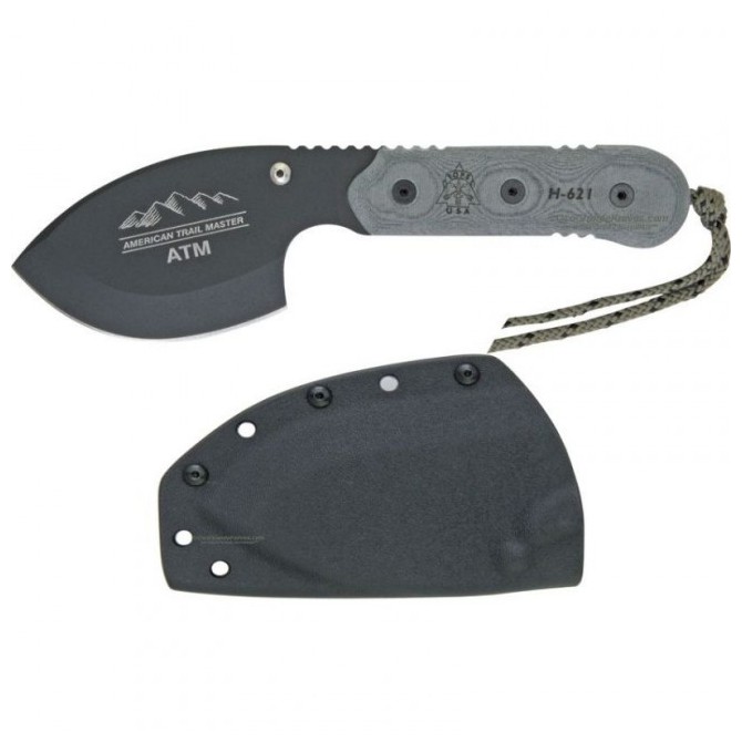 El cuchillo Tops American Trail Master es un arma diseñada para el combate, aunque ofrece prestaciones excelentes en operaciones táctico-militares y táctico-policiales. El acero con el que está construido es muy duro, y es capaz de mantener de forma excelente el filo.