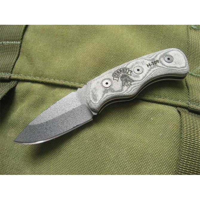 La compañía Tops Knives ha sacado al mercado el cuchillo Ferret, que cuenta con una hoja tipo Drop Point fabricada en acero 1095 en acabado negro. La empuñadura está diseñada en Micarta e incorpora una funda Kydex.