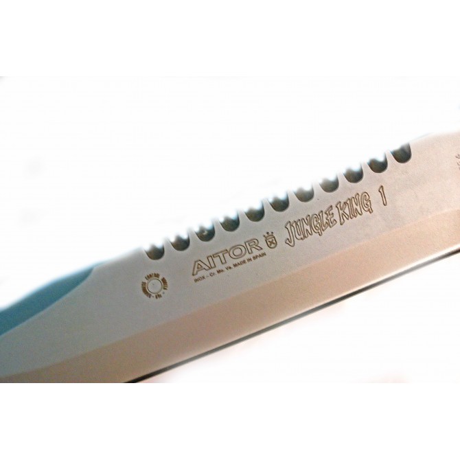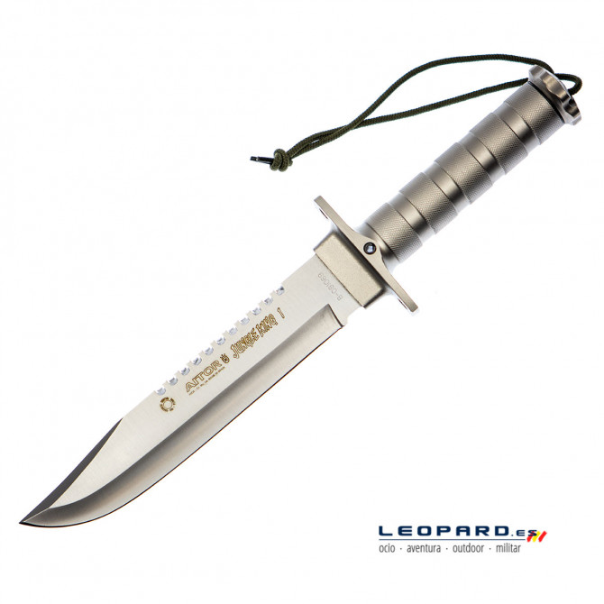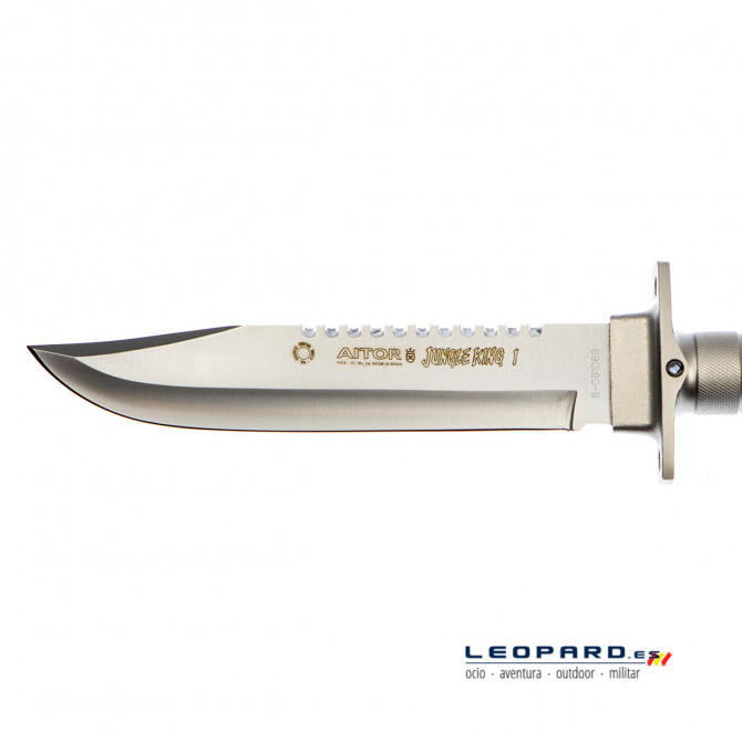 La conocida y famosa marca de cuchillos española Aitor presenta el nuevo modelo Jungle King I con hoja de acabado satinado. Es una hoja fabricada en acero X42Cr13, perfecto para cortes efectivos y precisos. Su estilo de hoja Clip Point y su empuñadura en acero inoxidable tratado rematan un cuchillo perfecto para entornos táctico-militares.