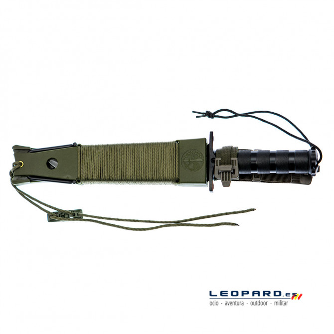 Este cuchillo de supervivencia de origen español es todo lo que necesitas. Está fabricado en materiales de alta calidad. Su versatilidad lo ha convertido en uno de los favoritos de los cuerpos de seguridad para entornos tácticos. Además, este cuchillo incluye una funda de fibra verde para poder transportarlo de manera segura.