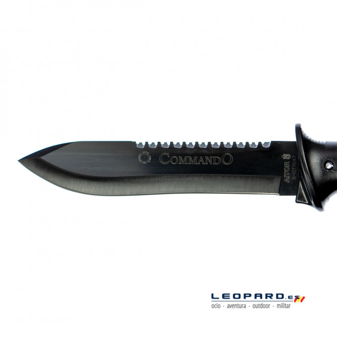La conocida marca española Aitor trae a Leopard el cuchillo Commando. Este cuchillo táctico-militar incluye hoja fabricada en acero inoxidable 440C y que cuenta con un estilo de hoja Clip Point. Su empuñadura es de aluminio, en color negro. Incluye funda de polímero con fibra de vídrio, para su transporte.