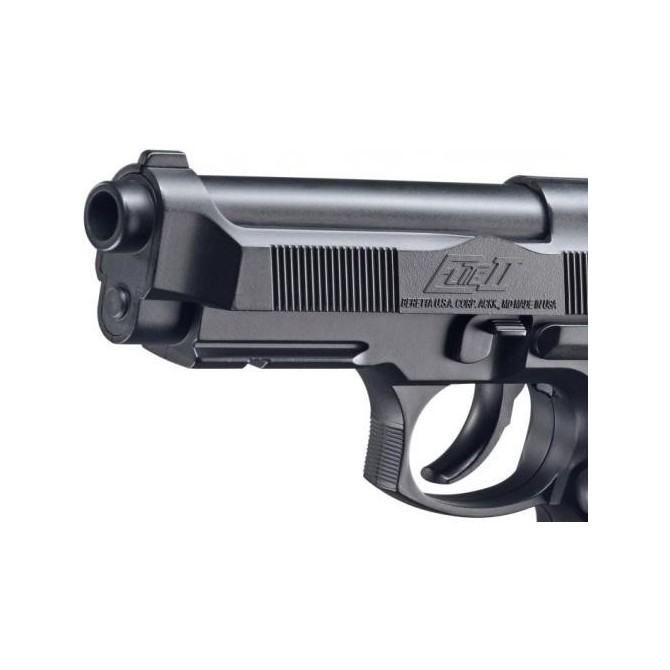 La Beretta 92 Elite II es una pistola semi-automática de Co2 que tiene un cañón de acero liso y corredera fija. Tiene una capacidad de cargador de 18 BBs. Contiene miras abiertas y un carril inferior para poder poner una linterna, láser, etc. Incorpora seguro manual para prevenir accidentes y empuñadura ergonómica anti-fatiga.