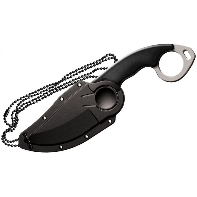 Los desarrolladores de Cold Steel han equipado a este cuchillo con una funda de polímero en color negro para proteger a la cuchilla de posibles golpes y arañazos. Así mismo, el usuario podrá transportar esta pieza de una manera más sencilla.