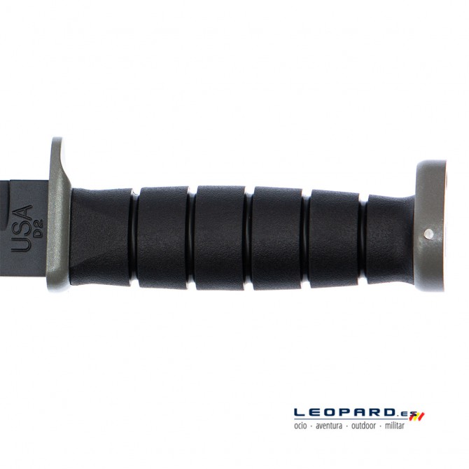 La prestigiosa firma Ka-Bar ha diseñado el cuchillo táctico-militar Extreme. Este modelo se caracteriza por tener una hoja de filo mixto de acero D2 con recubrimiento de polvo epoxi negro. La empuñadura está fabricada en Kraton con acabado negro. Además, incluye una funda de cuero para hacer más fácil su transporte.