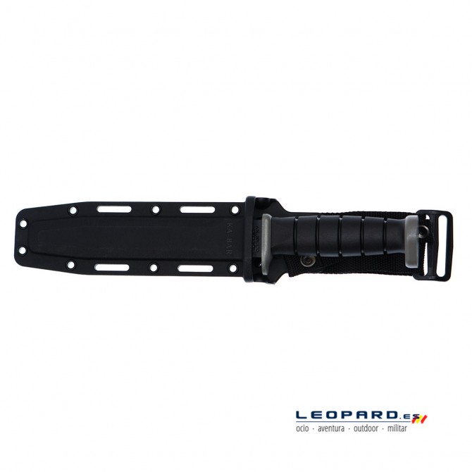 La compañía Ka-Bar ha equipado a este cuchillo Extreme con una funda de polímero de color negra, que está compuesta por nylon con relleno de vidrio negro. Asimismo, gracias a su estructura se puede amarrar en cualquier cinturón para un transporte más cómodo. A su vez, la funda protege al cuchillo de posibles golpes y arañazos y al usuario de posibles cortes.