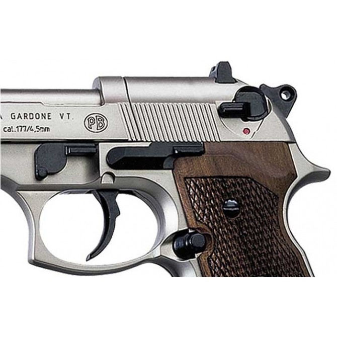 La Beretta M92 FS es una pistola semi-automática con sistema de carga interno alimentado por bombonas de Co2 de 12 gramos, que posibilitará una velocidad de salida de 120 m/s. Incorpora un cuerpo de full metal en Níquel y Madera. Dispone de cargador con capacidad para 8 balines y gatillo ajustable.