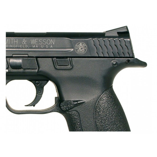 El fabricante Smith & Wesson ha desarrollado esta M&P40, una pistola semi-automática fabricada en polímero resistente a los impactos que tiene un sistema de carga a través de bombona de CO2 de 12 gramos. Incluye un cargador con capacidad para 19 BBs y miras abiertas en fibra óptica tipo Truglo.