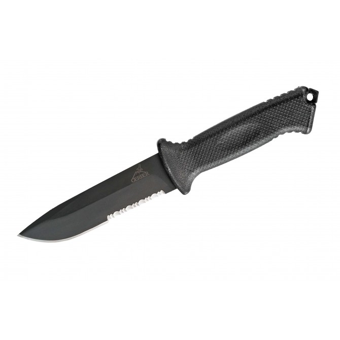 Además, los desarrolladores de Gerber han incorporado en la hoja negra un acabado antirreflejante para que el usuario pueda trabajar con el cuchillo de una manera más cómoda. Incorpora un filo mixto.