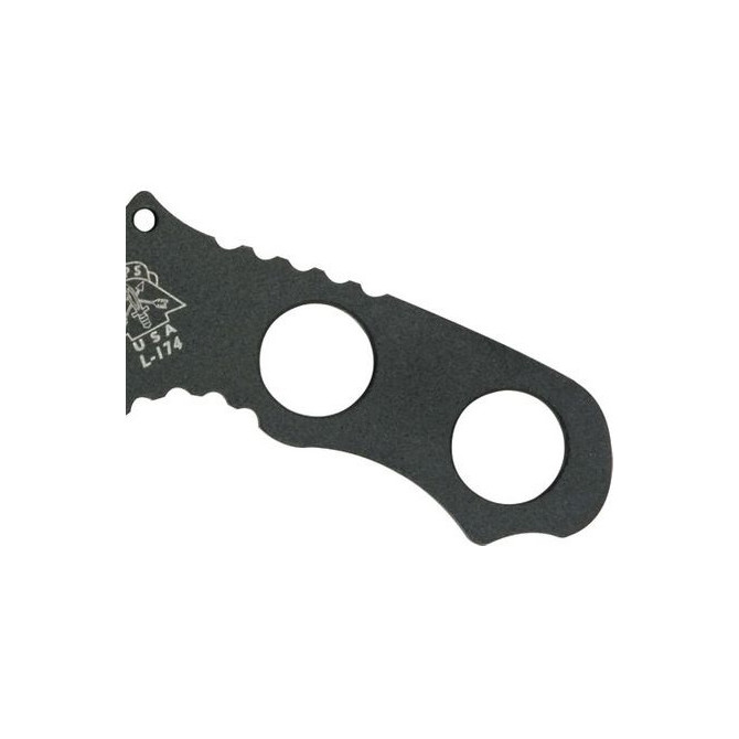 Este tipo de aceros es uno de los más utilizados para la producción de cuchillos de combate. Además, la hoja cuenta con un recubrimiento negro para conseguir una mayor resistencia y durabilidad.
