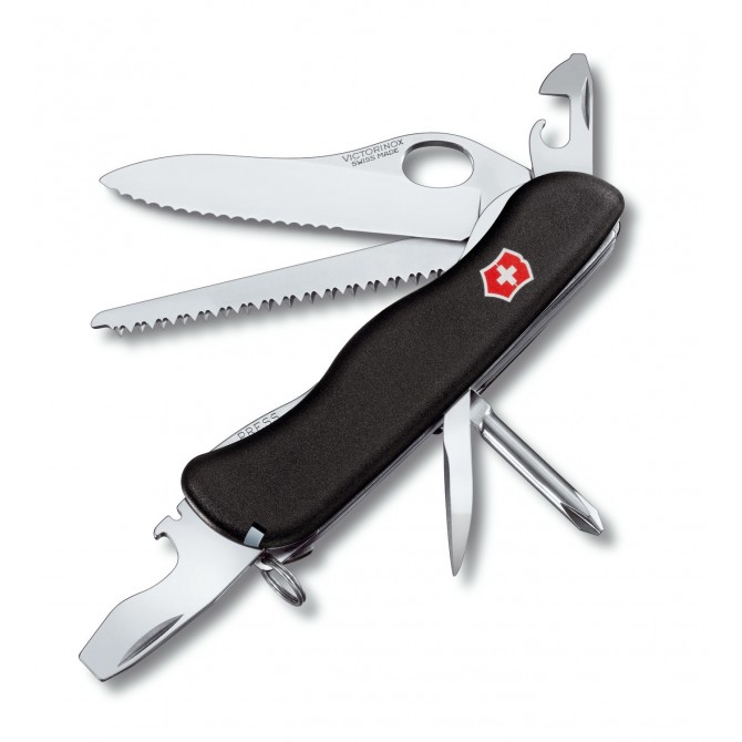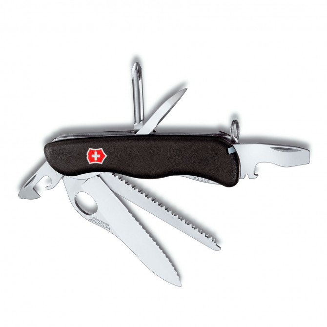 La legendaria marca Victorinox saca al mercado el modelo Trailmaster One Hand Black , la opción de todo aventurero. Cuenta con 12 usos, como la hoja principal mixta con bloqueo y apertura a una mano. Las cachas han sido fabricadas con ABS-Cellidor de acabado en sólido negro.