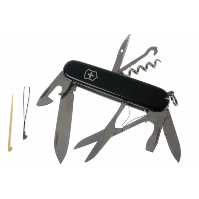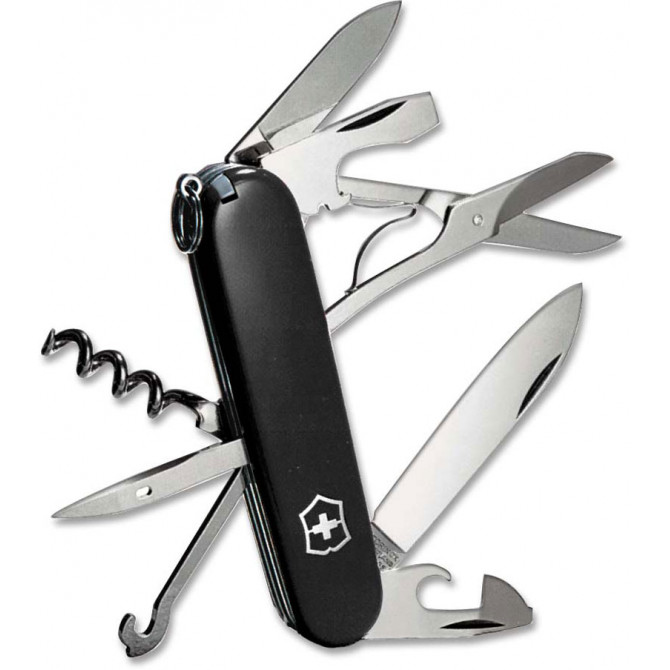 La Victorinox Climber Black es una navaja de tamaño medio con un propósito claro: ayudar a resolver los problemas del día a día en supervivencia y montaña. Cuenta con 14 usos fabricados con acero inoxidable endurecido, y entre los que destacan la hoja principal, la hoja pequeña, destornilladores múltiples y pelacables.